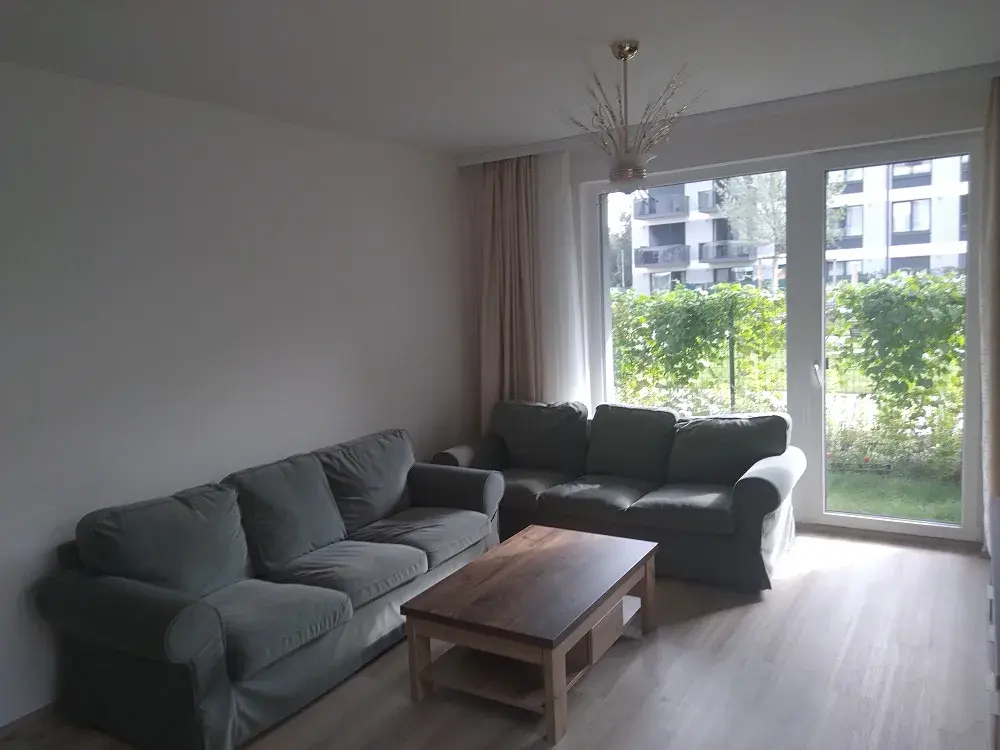 Jednotka se skládá z předsíně s chodbou, ze 2x samostatných neprůchozích pokojů, obývacího pokoje se 2x vstupy na zahrádku a se vstupem na zimní zahradu, ze samostatné kuchyně, která je oddělena od obývacího pokoje posuvnými dveřmi, z koupelny s vanou, samostatného WC, komory a předzahrádky. K jednotce náleží dále i komora (sklep) 4 m2 a parkovací místo v garážích.