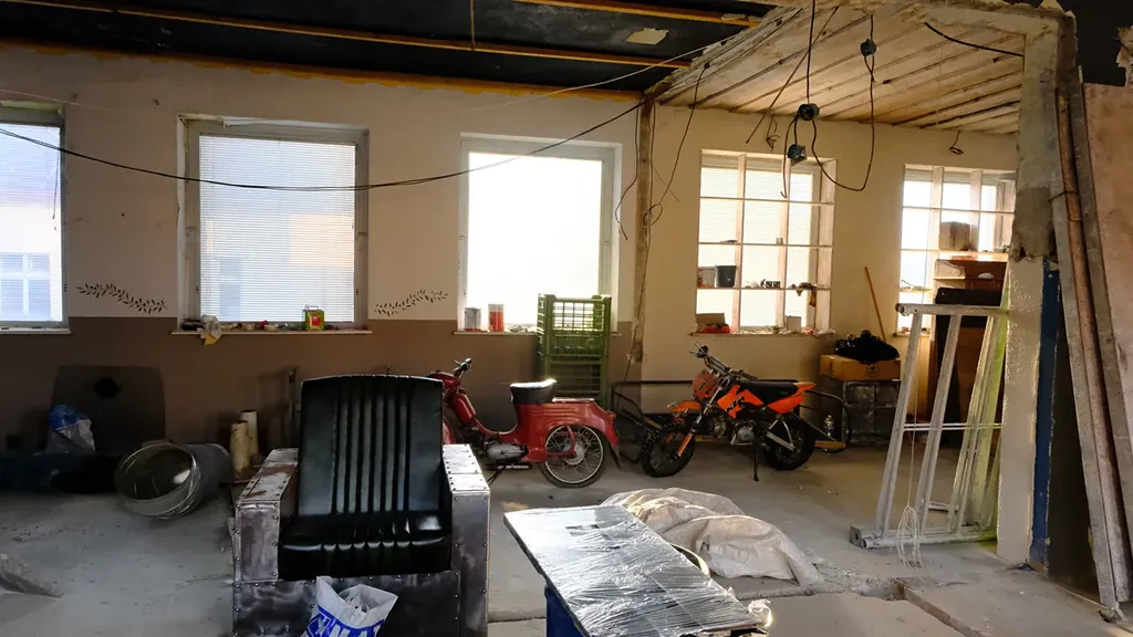 - zámečnická dílna, parkoviště, původní rockový klub s vybavením a se zázemím , sklad (WC - Ž, M) – klub je plně vybaven a v provozu od r. 1996, užitná plocha celkem cca 500 m2, výška stropů 4,2m