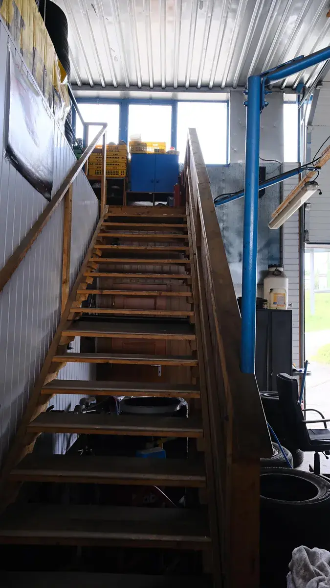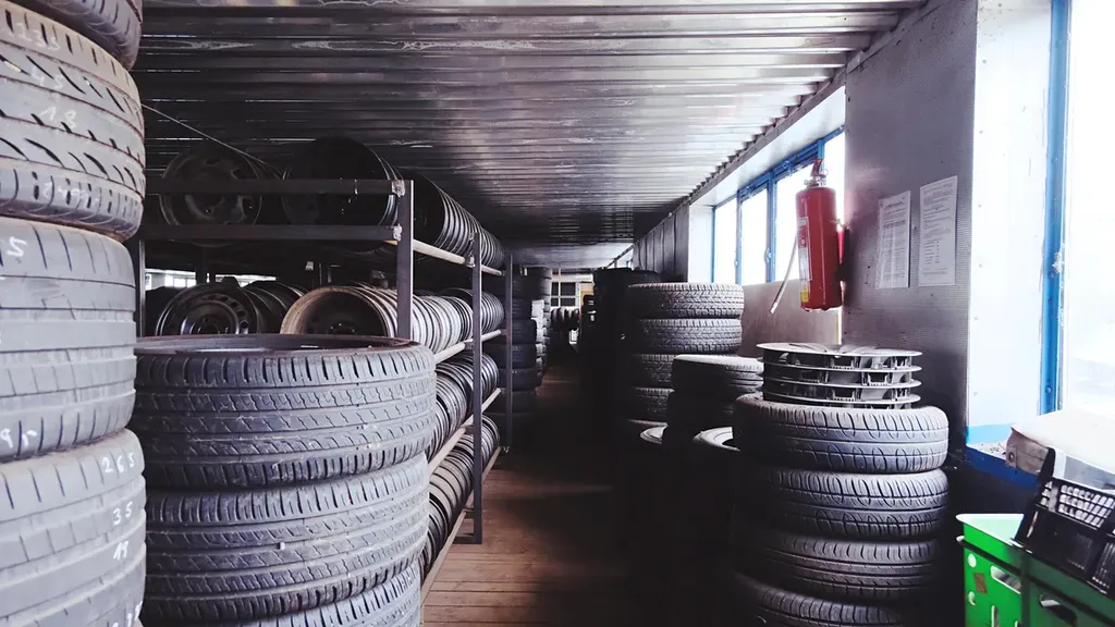 - 1.patro: sklad pneu a disků, regály