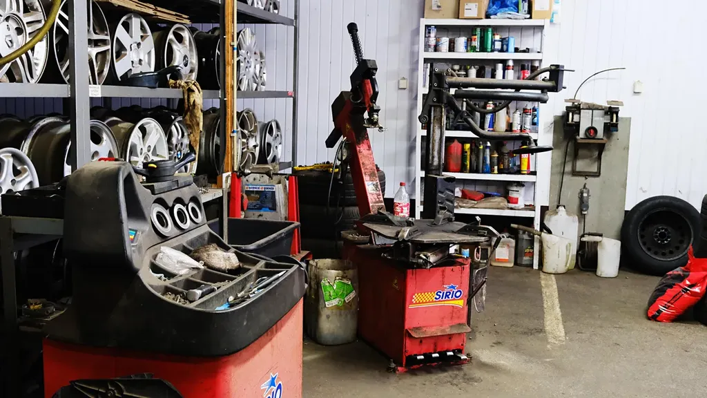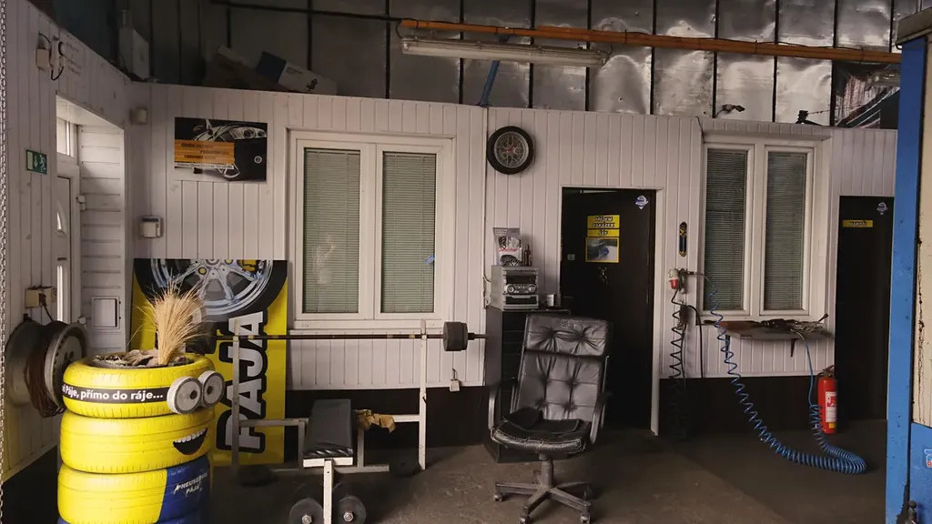 - kompletní vybavení ( 2 x přezouvačka, 1 x vyvažovačka, 1 x kompresor, 2 x pneu utahovák, zvedák do 3 t, veškeré nářadí a nástroje, regály)