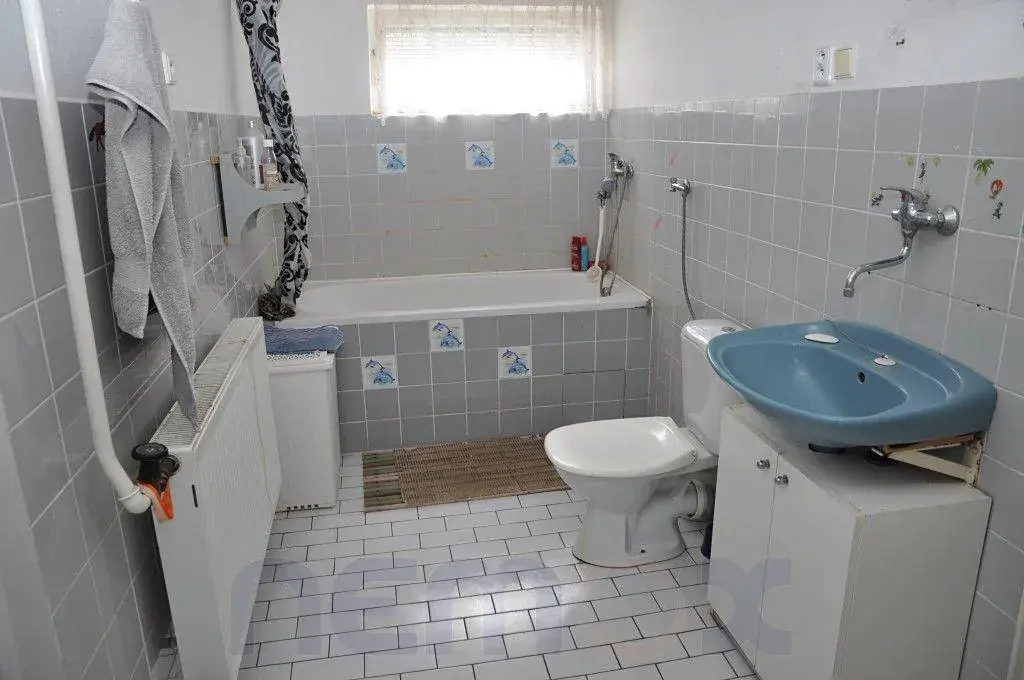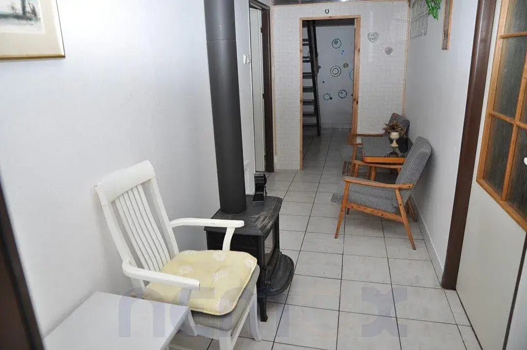 Celý sklep je přebudován na druhý byt, kde je podobná dispozice - obývací pokoj s kuchyní, 2 ložnice, koupelna s toaletou, komora a kotelna. Podlahová plocha je 86 m2.