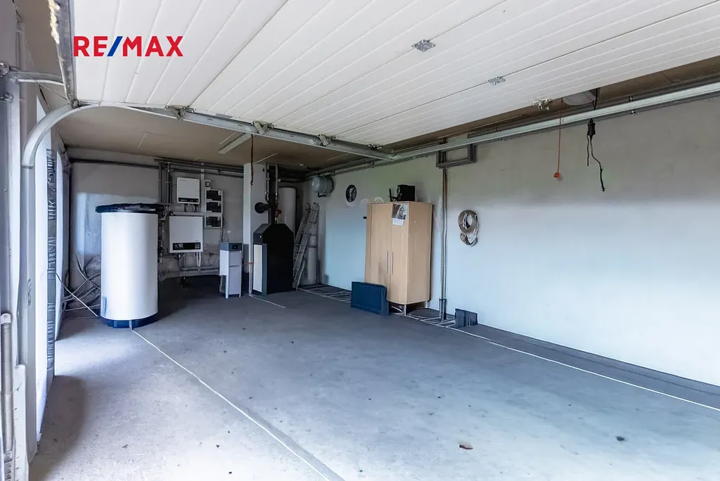 Dům je vybaven jednou garáží přístupnou sekčními vraty a na pozemku jsou k dispozici další parkovací místa.