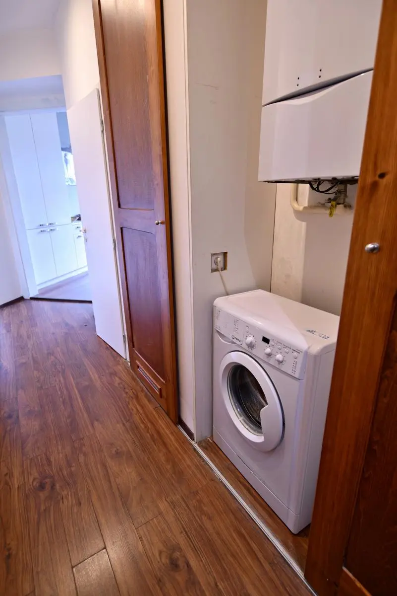 Interiér bytu byl navržen s důrazem na praktičnost a pohodlí. Dispozice zahrnuje obývací pokoj, moderní kuchyň s jídelním koutem a ložnici, které byly promyšleně uspořádány, aby poskytovaly maximální komfort. Kuchyňská linka je vybavena vestavěnými spotřebiči včetně lednice s mrazákem, myčky, trouby a sporáku, což zajišťuje plnou funkčnost a eleganci prostoru. Koupelna disponuje sprchovým koutem, kvalitními zařizovacími předměty ( pračka je umístněna v chodbě ve skříni).
