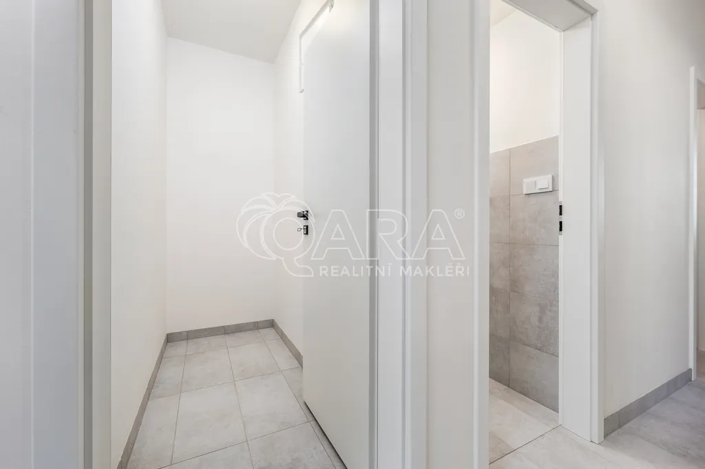 Nadstandardní byt disponuje podlahovou plochou 63 m2 plus lodžie a nachází se v 5. nadzemním podlaží nově dokončovaného projektu Výhledy Barrandov. Součástí vybavení je na míru zhotovená kuchyňská linka s vestavěnými kvalitními spotřebiči (indukční varná deska, mikrovlnná trouba a myčka, zabudovaná digestoř, lednice, mrazák). Koupelna s vanou, úložnými prostory a pračkou se sušičkou. Samostatná toaleta s umyvadlem. Komora, která nabízí další úložný prostor nebo ji lze využít jako šatnu. Dostatek úložného prostoru zabezpečují veškeré skříně, které jsou umístěny v předsíni, koupelně a ložnici. Součástí vybavení je také dvoulůžko v ložnici a další nábytek jako je nová sedací souprava, televize, jídelní stůl, židle. Druhá ložnice záměrně bez vybavení. Možno vybavit jako pracovnu, posilovnu či dětský pokoj. Obě ložnice mají výhled do klidného vnitrobloku. Obývací pokoj s lodžií je orientován do zeleně. K plnému využití máte k dispozici sklep, komoru v bytě a ještě jednu komoru v budově. O úložné prostory je tak náležitě postaráno. K bytu náleží garážové parkovací stání. V domě je k dispozici také kočárkárna / kolárna.