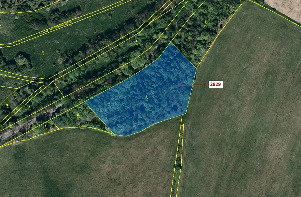 Lesní pozemek o výměře 7776 m2, parcelní číslo 2829, podíl 1/1, katastrální území Podlesí nad Odrou, obec Budišov nad Budišovkou, obec s rozšířenou působností Vítkov, okres Opava, Moravskoslezský kraj.
