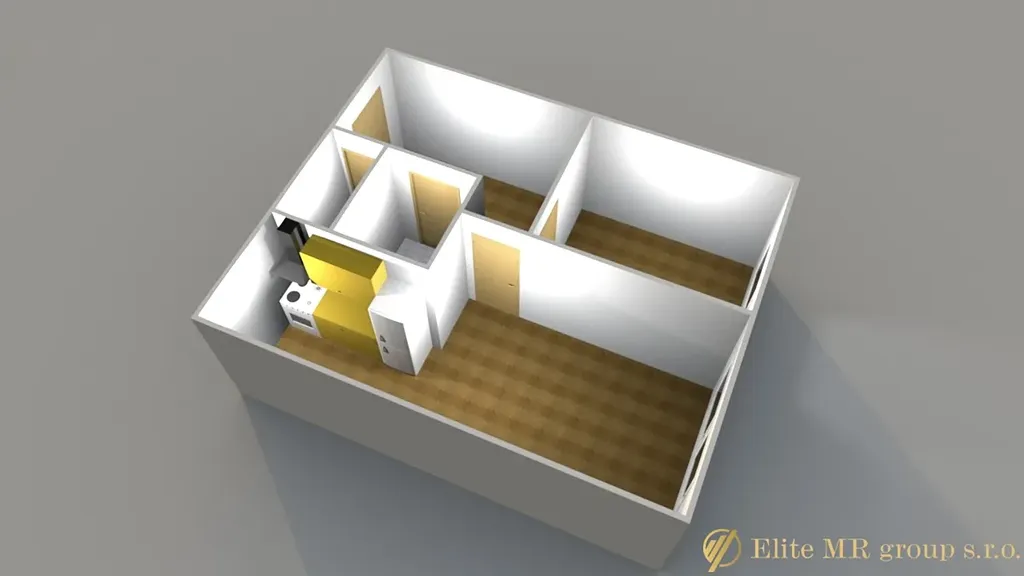Byt se nachází ve 7. patře sedmipatrového panelového domu s výtahem. Za vstupem do bytu najdete prostornou předsíň s vchodem na samostatné WC, do koupelny se sprchovým koutem, dále do pokoje a do druhého pokoje s kuchyňskou linkou.