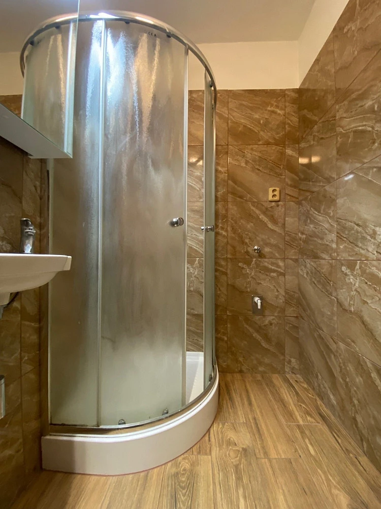 Byt po celkové rekonstrukci je dispozičně, velice prakticky řešen. Prostorná vstupní část nabízí dostatek úložného prostoru v podobě vestavěné skříně, zabudované po celé pravé části chodby. Bytová jednotka sestává ze dvou samostatných pokojů a krásné, standardně vybavené kuchyně, která působí svým designem nadčasově. Koupelna disponuje umyvadlem a sprchovým koutem. WC je samostatné.