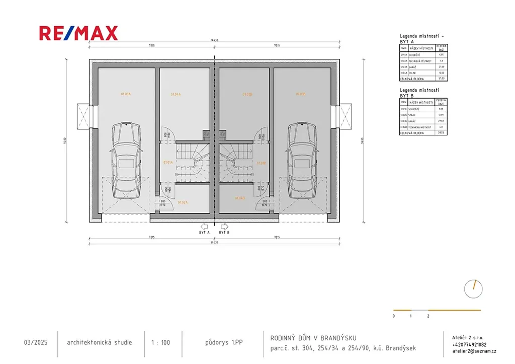Pozemek 1.735 m2 v obci Brandýsek s návrhem domu o dvou bytových jednotkách ve fázi úředního projednání