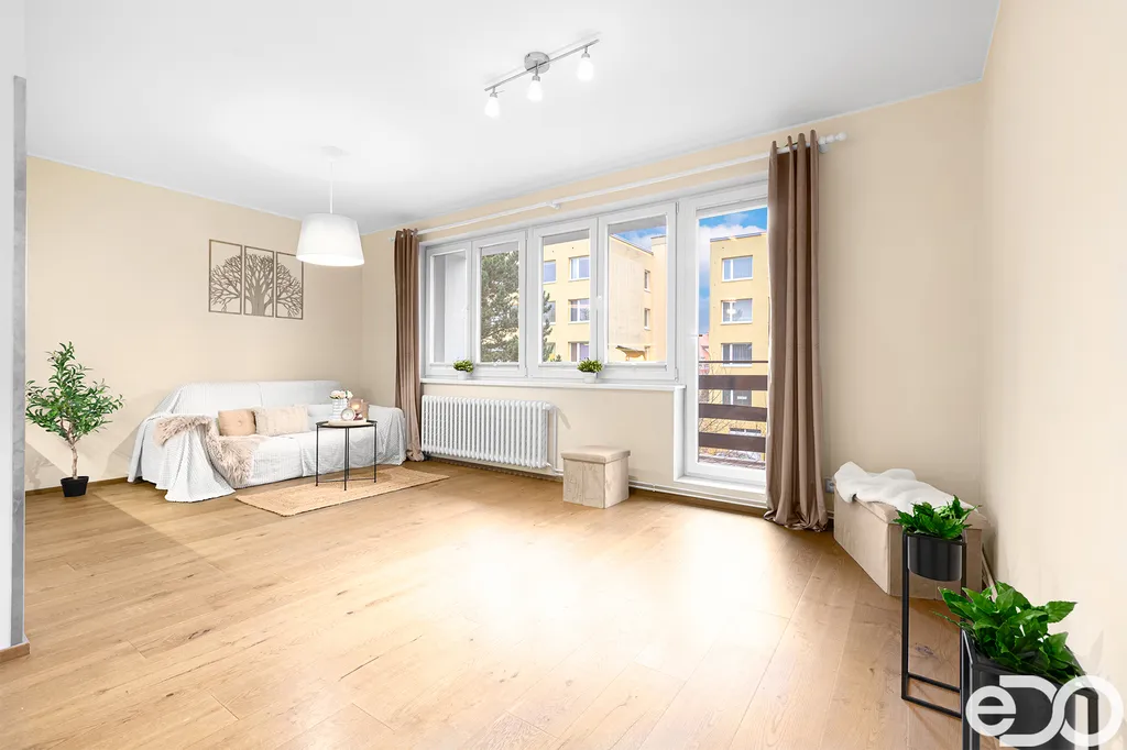 Byt je dispozičně členěn na dvě ložnice a obývací pokoj, který je praktickou příčkou oddělen od kuchyně. Z obývacího pokoje je vstup na prostornou lodžii 7m2 orientovanou na západ, takže majitelé bytu se v horkých letních měsících nemusejí obávat vysokých teplot. Obě ložnice mají severní orientaci.