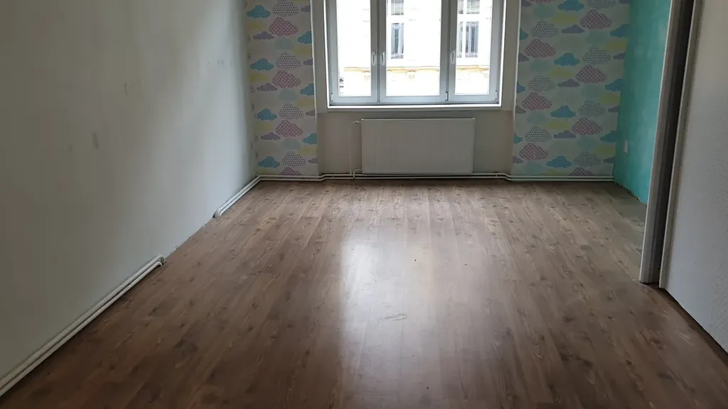 Byt je bez nábytku, pouze kuchyňská linka se sporákem, nový plynový kondenzační kotel. v předsíni a 2 pokojích je oddělená šatna, v nejmenším pokoji spací patro.