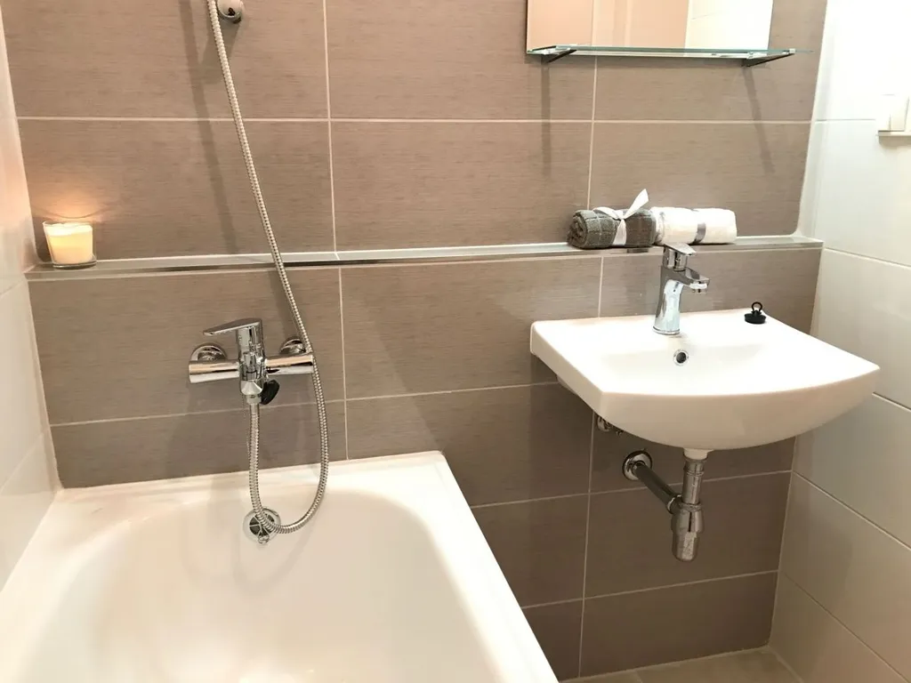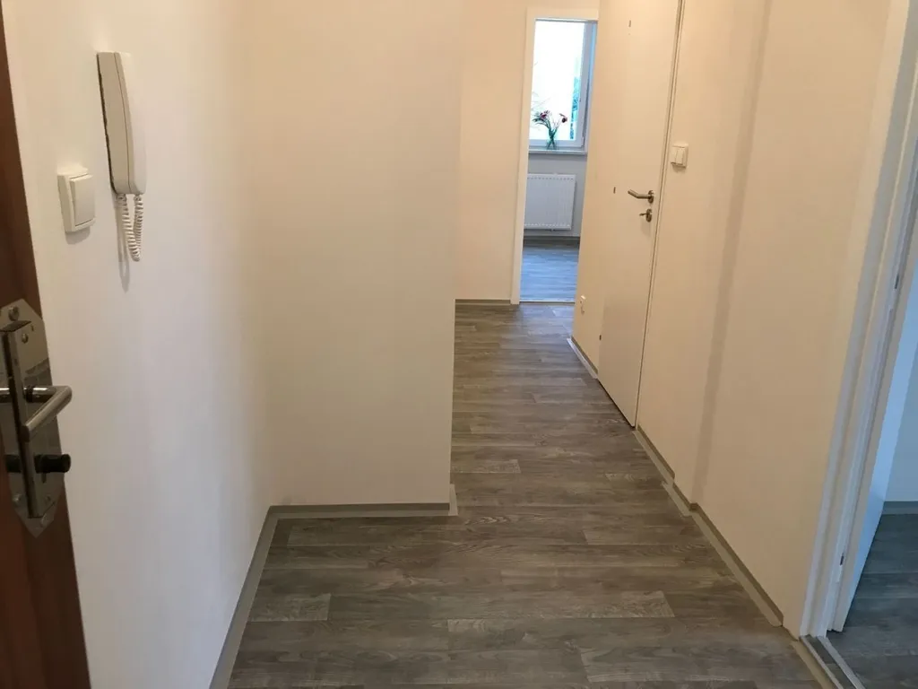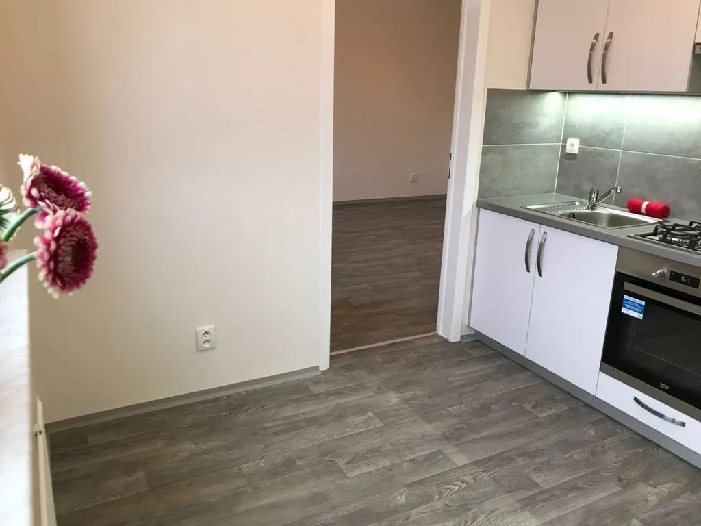 Byt je po kompletní rekonstrukci z roku 2018 a nachází se ve zvýšeném přízemí z 8. podlažního zatepleného panelového domu. Byt má vyzděné jádro, podlahy (PVC), rozvody, omítky, interiérové dveře. Koupelna s vanou a umyvadlem s možností připojení pračky, toaleta je odděleně. Kuchyňská linka je opatřena vestavěnou plynovou varnou deskou a vestavěnou elektrickou troubou a digestoří.