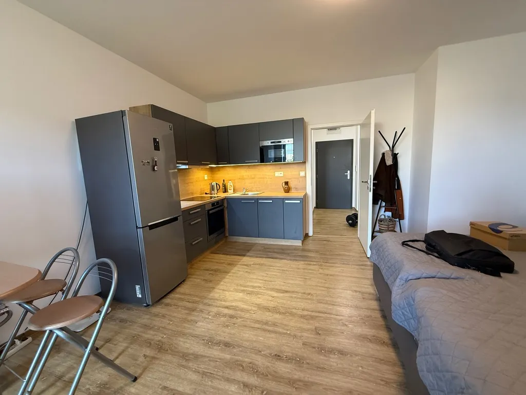 Zrekonstruovaný byt 1+kk v Ústí n.L. Rezidence-Hradební Nabízíme Vám k podnájmu zrekonstruovaný byt 1+kk o celkové výměře 40,3 m2 v nově moderně upraveném komplexu Rezidence - Hradební v Ústí nad Labem naproti kulturnímu domu. Byt se nachází ve 4.NP budovy, kde jsou dva výtahy a možnost parkování v podzemních garážích. Bytová jednotka moderního designu sestává z prostorné předsíně, velkého pokoje s kuchyňským koutem a koupelny s WC, kde je také připravena přípojka na pračku. K bytu náleží sklep. K nájmu se platí zálohy na teplo 800,-Kč, vodu 700,-Kč/os. a ost.popl.cca 505,-Kč (výtah, úklid spol. pr. atd.. Elektřina se přepisuje na podnájemníka. Jistota se skládá majiteli ve výši dvou holých nájmů a jedno holé nájemné je provize RK. Dispozici bytu najdete na webových stránkách Rezidence - Hradební. Ohledně informací a dalších položek za garážové stání a sklep, které nejsou v ceně nájmu zahrnuty, či dalších možných poplatků mne neváhejte kontaktovat. Byt bude k nastěhování od 15.01.2026.