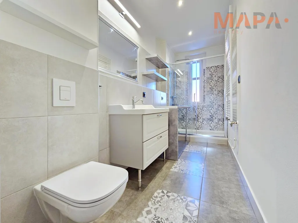 Kuchyně je vkusně zpracovaná v nadčasovém stylu s dostatkem úložného prostoru a kvalitními spotřebiči. Díky mezonetovému řešení byt působí velmi vzdušně a nabízí dostatek soukromí i prostoru pro jednotlivce, rodinu nebo práci z domova.