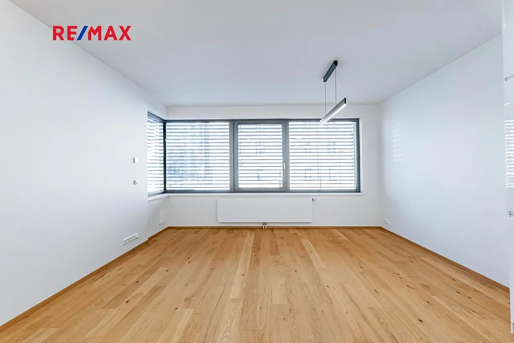 Nemovitost se nachází ve druhém patře objektu, který disponuje výtahem. Při vstupu do bytu se nacházíme v prostorné vstupní hale (9.06 m2). Z ní se dostaneme na toaletu (1.35 m2), nebo dále do obývací místnosti spojené s kuchyňským koutem (25.06 m2). Ten disponuje všemi potřebnými spotřebiči včetně oblíbené myčky a nelze opomenout ani lednici. Vše je zcela nové a Vy tak budete mít možnost započít novou kapitolu svého života jako úplně první nájemníci. Proto Vás jistě potěší i oddělená ložnice (16.84 m2), u které se nachází koupelna (6.3 m2). Ta je dostatečně veliká, aby se do ní vešla pračka a spolu s tím i sušička na prádlo. Dalšími přednostmi bytu, které rozhodně oceníte, jsou venkovní žaluzie, takže v případě touhy po větším soukromí stačí stisknout potřebné tlačítko. A vedle toho pak nelze opomenout ani instalovanou rekuperaci.