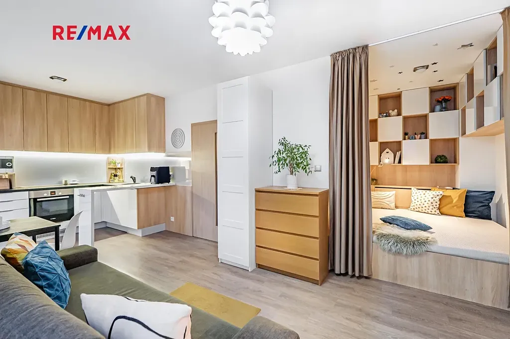 V Padovské ulici v Praze v městské části Horní Měcholupy na Vás čeká nádherný byt o dispozici 1+KK k pronájmu. Podlahová plocha činí 35,6 m². K bytu náleží i lodžie o výměře 8,4 m². Byt se nachází v prvním patře novostavby a pronajímá se tak, jak je zachycen na fotografiích, tj. vybavený.