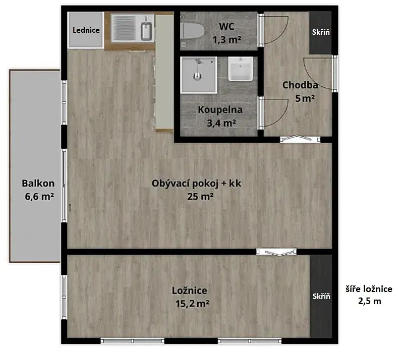 • zastřešený balkon přístupný z obývacího pokoje