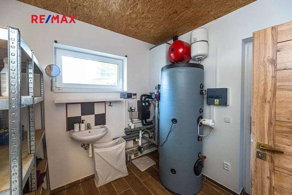 Dům je postaven jako moderní dřevostavba s nadstandardní tepelnou izolací. Na střeše je instalována fotovoltaika, napojen je na obecní vodovod, současně disponuje i vlastní studnou, kterou lze využívat pro užitkovou vodu, zalévání a splachování.