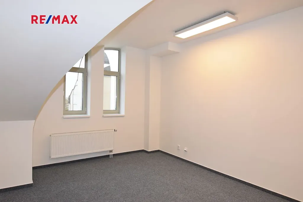Dovoluji si Vám nabídnout pronájem komerčních prostor (kanceláří) o celkové výměře 30 m2 ve 3. patře lukrativní administrativní budovy přímo v centru města, na Náměstí Přemyslovců. Jedná se o 2 průchozí kanceláře, které mají vlastní klimatizační jednotku s dálkovým ovládáním. V menší kanceláři bylo dodatečně instalováno střešní okno (není na fotografiích). Kancelářské prostory jsou ideální například pro sídlo firmy, kontaktní místo apod. V budově je v dlouhodobém nájmu prosperující banka a další zavedené firmy a organizace. Do budovy lze vstoupit několika vchody a do třetího patra můžete využít jak schodiště, tak výtah. Samozřejmostí je možnost využívání společných kuchyněk a sociálního zařízení přímo na patře.