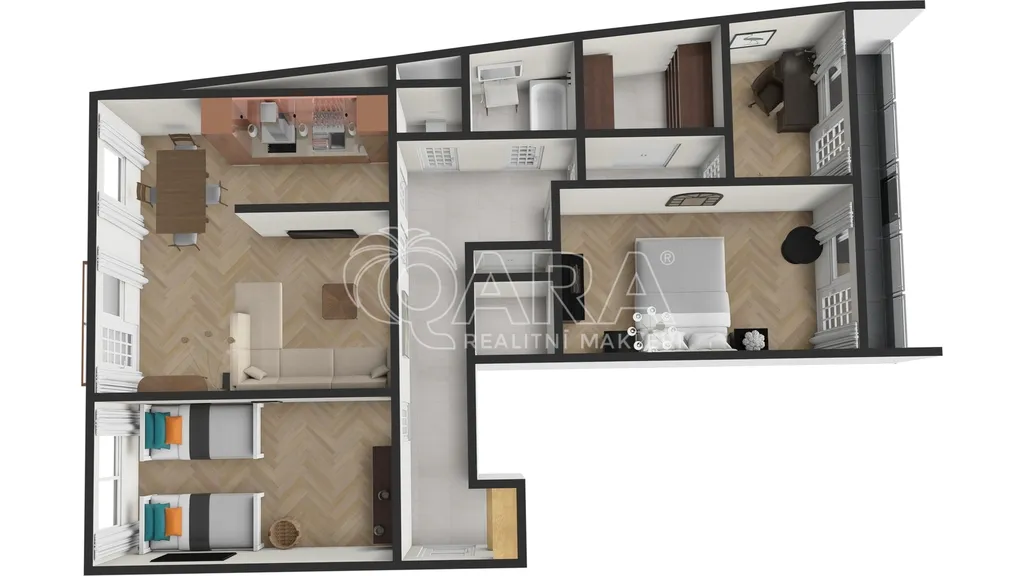 Tento byt byl navržen s ohledem na potřeby rodinného života. S velkorysou dispozicí a množstvím úložného prostoru poskytuje dostatek místa pro každého člena rodiny. Zároveň je zde prostorný obývací pokoj s kuchyňským koutem, kde se celá rodina může scházet a trávit společné chvíle. Představte si, jak se zde odehrávají rodinné události, nebo jak se večer všichni sejdete u večeře. Díky odděleným pokojům odpadají starosti s rušením při učení nebo práci z domova. Byt je v udržovaném stavu a čeká na novou rodinu, která mu vdechne život. Věřím, že tento prostor Vám nabídne komfort a klid, který je pro rodinný život zásadní.