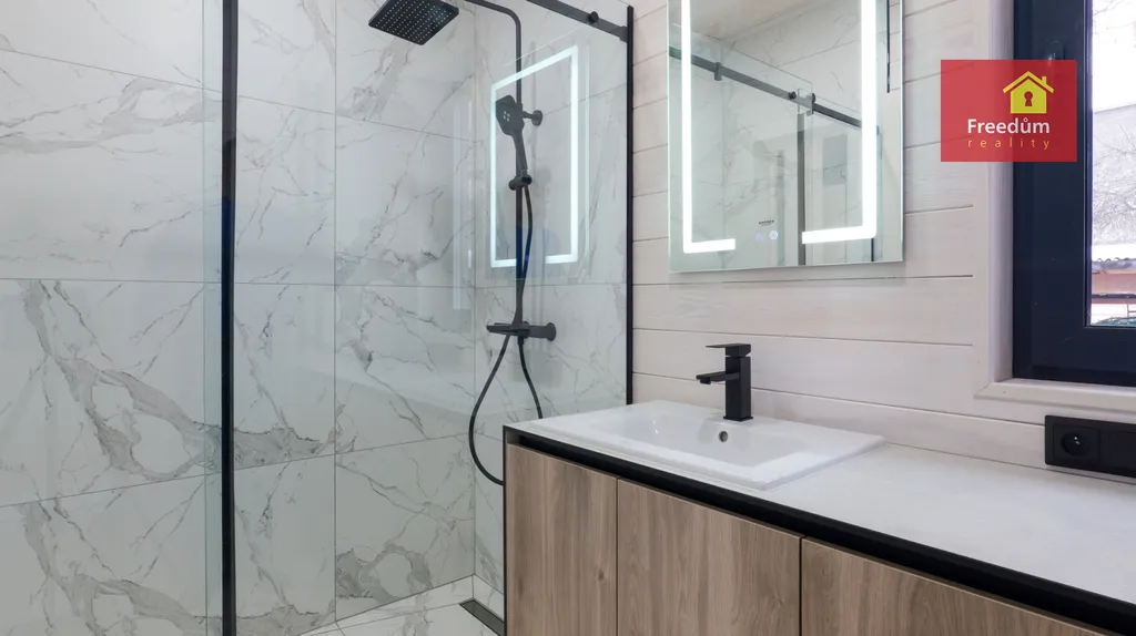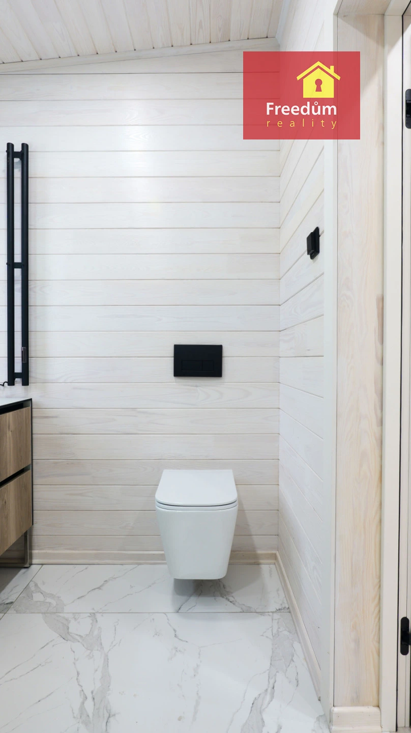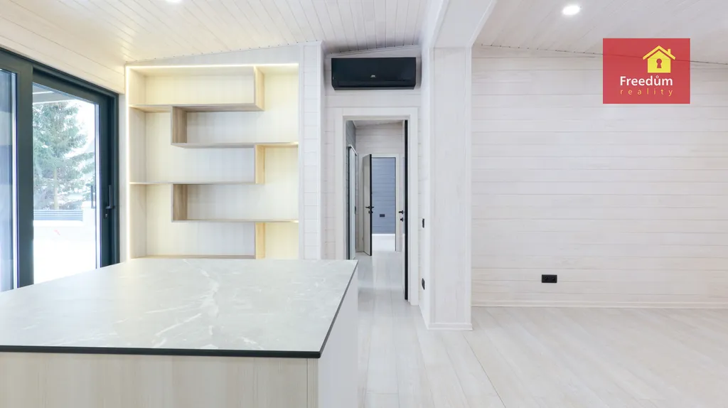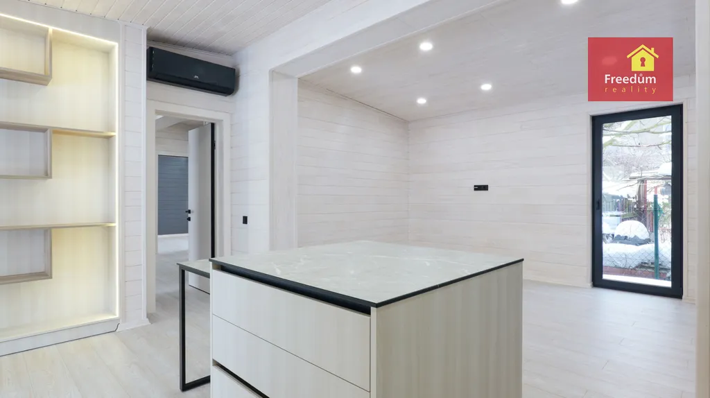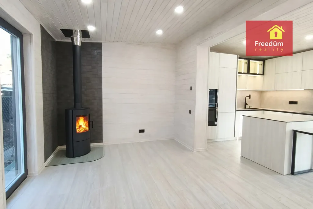 Hledáte pohodlné bydlení v nízkoenergetickém, ekologickém a útulném domě? Nový dům čeká na Vás. Prostorný, s dostatečným množstvím úložného prostoru. Dvě samostatné ložnice. Obývací pokoj s krbovými kamny. Plně vybavená vestavěnými spotřebiči kuchyňská linka. V domě je šatna, technická místnost, která může složit jako prádelna. V koupelně je sprchový kout, který je opatřen tvrzeným sklem odolným proti rozbití, keramické obklady a dlažba, závěsné WC.