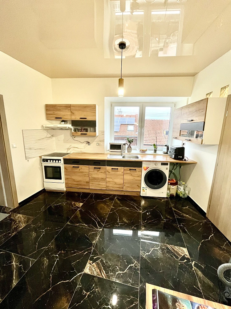 Byt prošel zdařilou rekonstrukcí, která zahrnuje vybudování nové koupelny se sprchovým koutem a WC, novou kuchyní, na stropech byla naistalována stropní deska. Ta má funkci nejen estetickou, ale především zabraňuje unikání tepla a pronikání hluku.