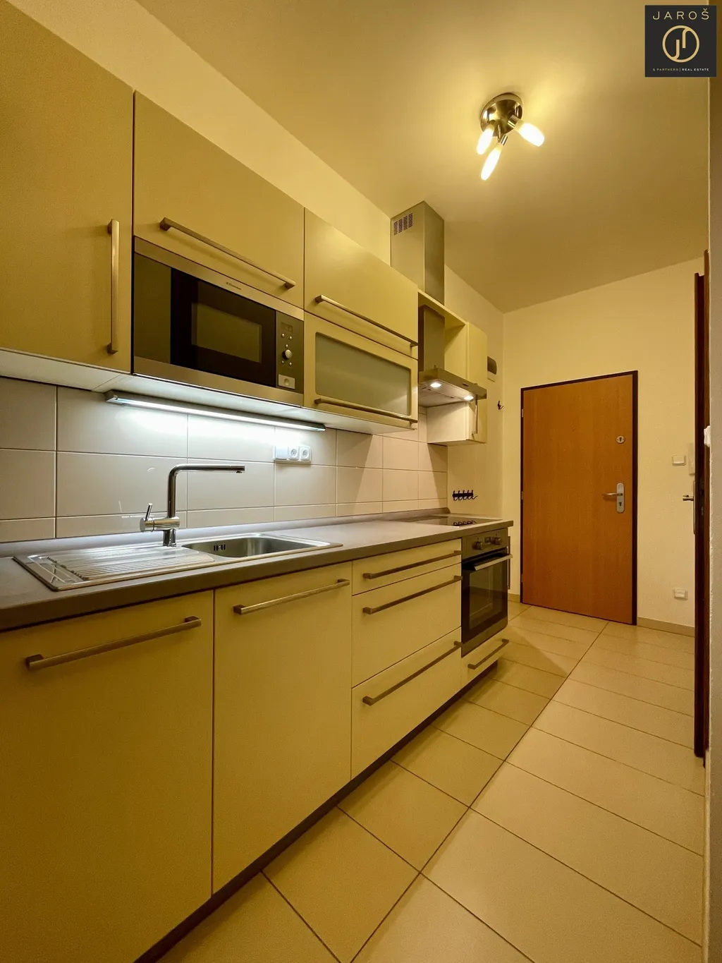 Aktuálně je byt částečně vybaven, v pokoji je k dispozici šatní skříň, skřínky na zdi a komoda pod televizi. Kuchyň je plně vybavena spotřebiči (elektrický sporák a trouba, lednice, myčka, mikrovlnná trouba) a v koupelně pračka.