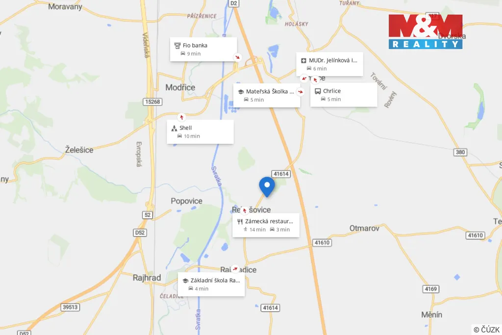 Nachází se v klidné části obce Rebešovice ve 2. nadzemním podlaží panelového domu, který disponuje celkem dvěma nadzemními a jedním podzemním podlažím.