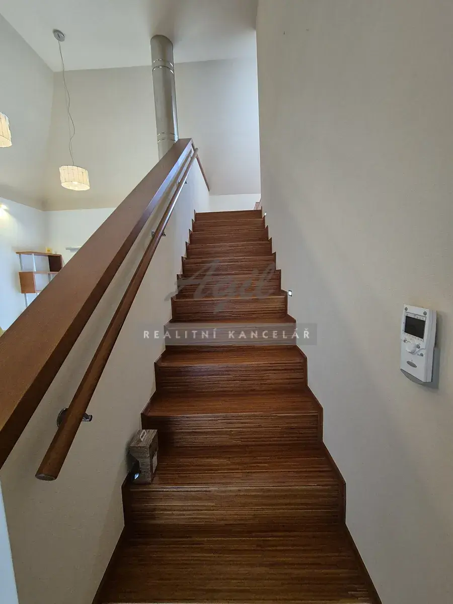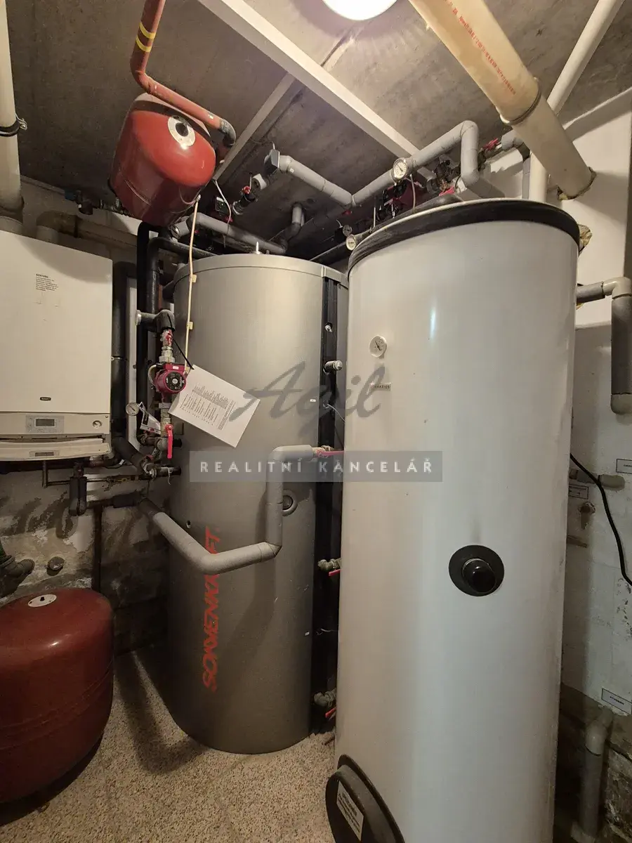 Garáž 26 m2, technická místnost 5 m2 s otopnou technologií, sklad 4 schodiště 4 m2.