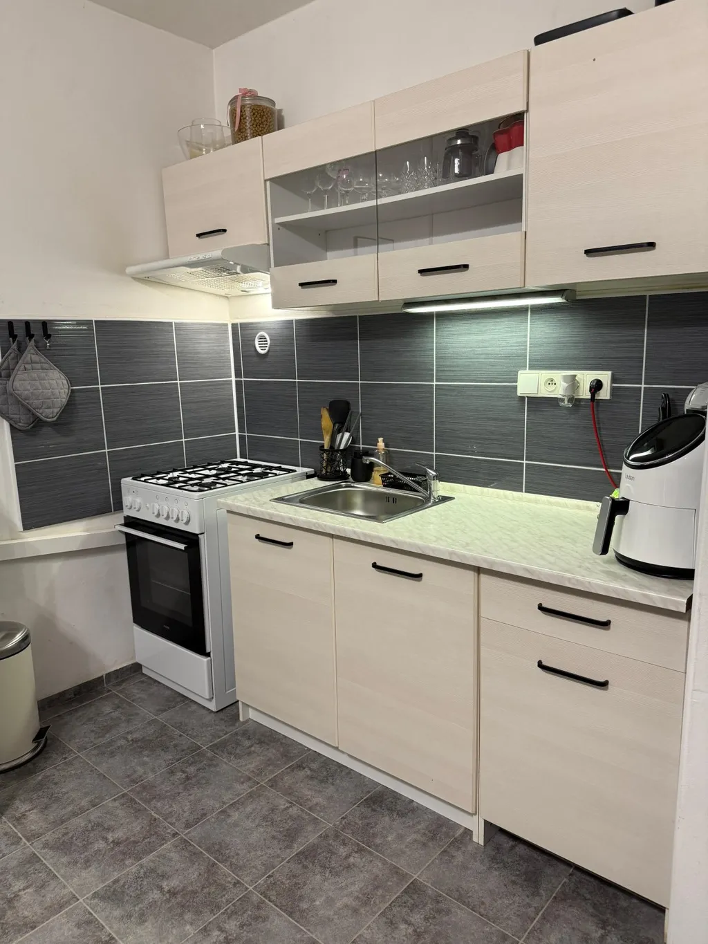 Byt prošel kompletní rekonstrukcí – zděné jádro, nové podlahy, dlažba, rozvody, omítky a interiérové dveře. Koupelna je vybavena vanou, umyvadlem a toaletou, která je součástí koupelny. Nová kuchyňská linka disponuje novým elektrickým sporákem s troubou a digestoří. K bytu náleží sklep a balkon v mezipatře. Podohodě je možn v bytě zanechat jídelní stůl, šatní skříň, lustry, pohovku, garniže popřípadně poličky.