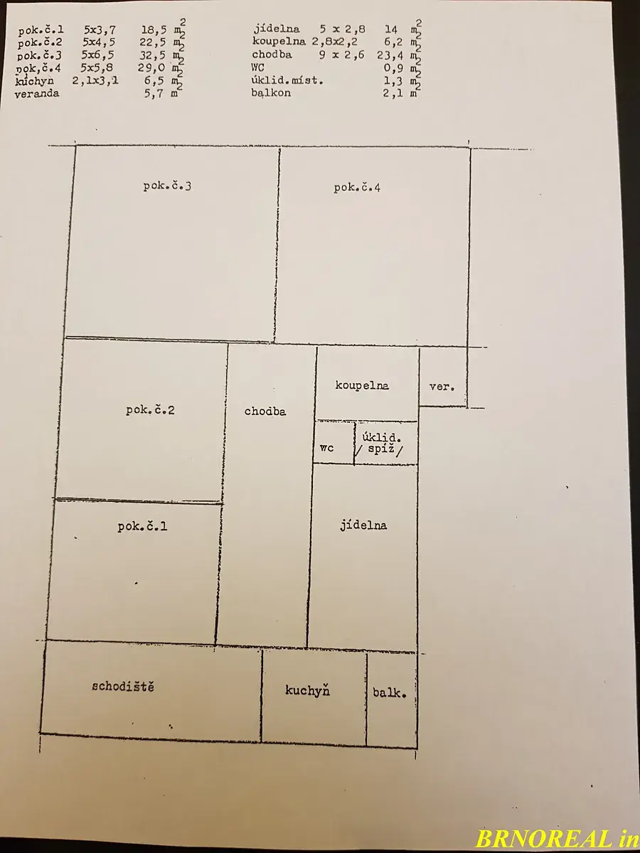 Jedná se o typický slunný byt městské zástavby o velikosti 5+1 v městské zástavbě a žádané lokalitě na ulici Střední v k.ú. Ponava s nerušeným výhledem částečně do dvorního traktu, který tvoří zahrada a částečně do klidné jednosměrné ulice Střední. Byt se nachází ve 2. nadzemním podlaží (1. patře), dostatečně vysoko nad ruchem velkoměsta o celkové podlahové ploše cca 178 m2, sestávající z 5 prostorných místností s centrální páteřní halou s jednotlivými vstupy do neprůchozích místností, z nichž v jedné místnosti se nachází krb, dále kuchyně, koupelny a WC. Místnosti mají rozměry: 18,50 m2, 22,50 m2, 32,50 m2, 29,00 m2 a 23,40 m2.
