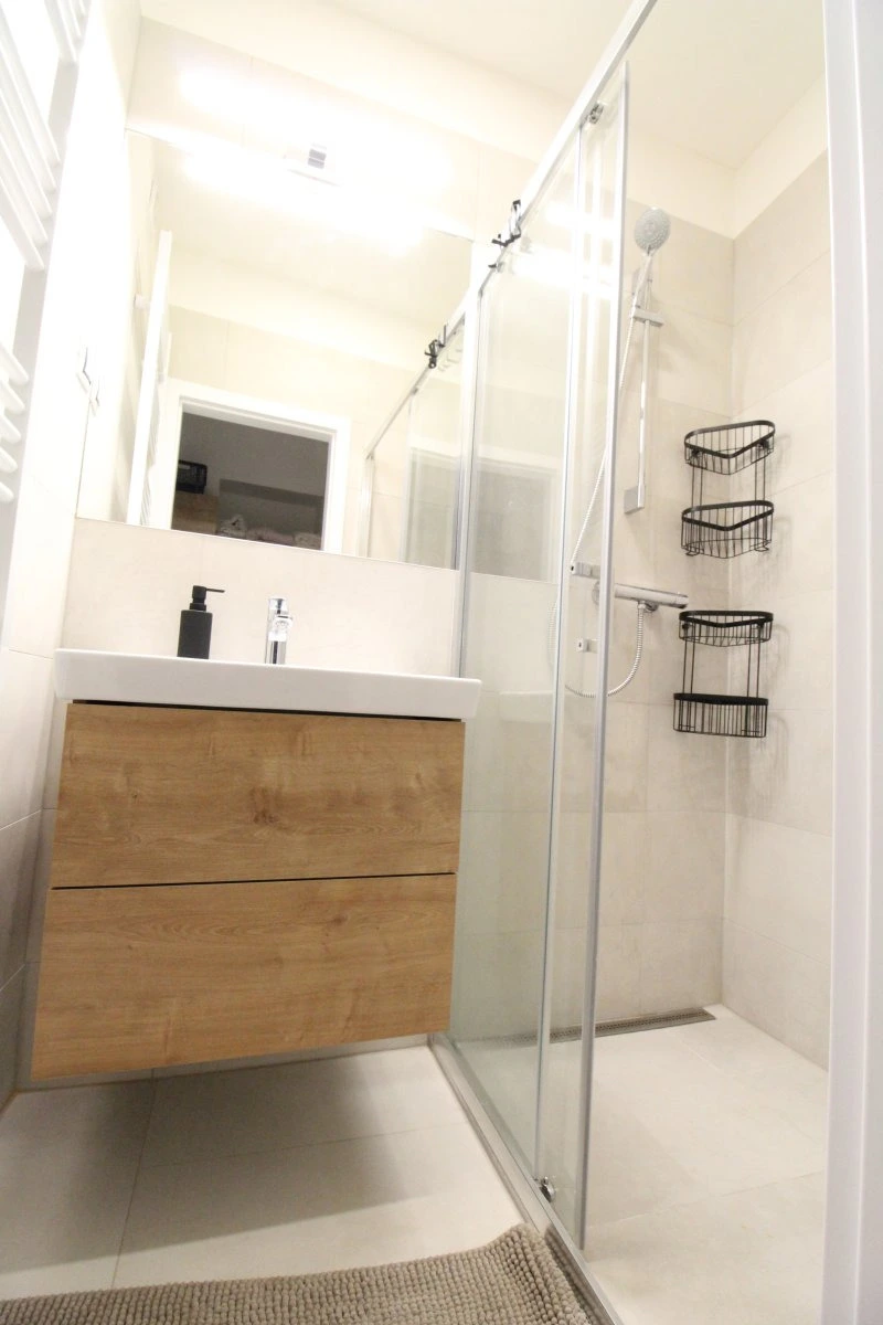 Ložnice je prostorná, útulná a krásně prosvětlená. Ložnice v rámci vybavenosti nabízí dvě skříně, noční stolky a dvoulůžkovou postel s matrací. Z ložnice je vstup na balkon. V koupelně je umyvadlo se zrcadlem, sprchový kout a toaleta.