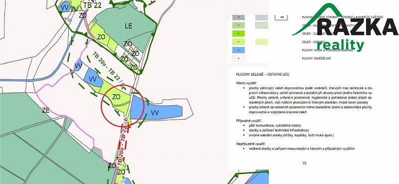 Celková výměra pozemku činí 1427 m². Pozemek je rovinatý a oplocený a v současné době je využíván výhradně k rekreačním účelům. Dle platného územního plánu je veden v kategorii plochy zeleně – ostatní.
