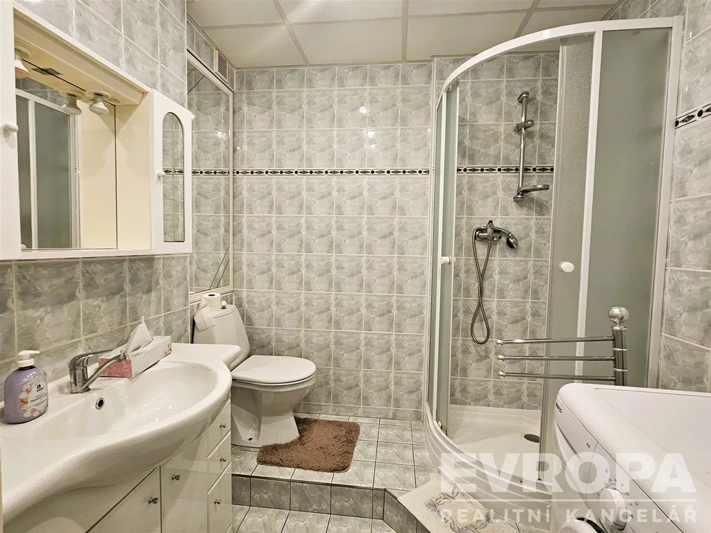 Ze vstupní chodby se vchází do koupelny se sprchovým koutem a WC. V obytné místnosti se nachází vybavený kuchyňský kout se zabudovanou malou ledničkou, digestoří a varnou deskou. Obytný prostor je vybaven dvojlůžkem, obývací stěnou a barovým pultem s židlemi.