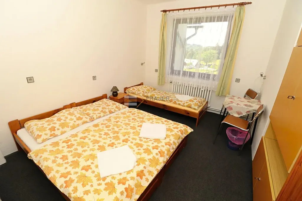 Nabízím Vám ke koupi rodinný dům, nyní penzion, o dispozici 7+KK, 221 m2, na exkluzivním místě v oblíbeném horském středisku v obci Benecko. Dům disponuje dvěma nadzemními podlažími a sklepem. V 1.NP se nachází veranda, předsíň, dva pokoje, společenská místnost, 2x koupelna se sprchovým koutem a WC, sklad, chodba, schodiště a vstup do sklepa (sklep 15 m2). V 2.NP se nachází tři pokoje, kuchyně, jídelna, spíž, koupelna s wc a schodiště. Dále k domu náleží k posezení dřevěný přístavek s krásným výhledem do okolí. Stavba je v udržovaném stavu z roku 1983. K dispozici je i zpracovaná studie k rozšíření stavby a optického oddělení od vedlejšího domu. Pitná voda je přivedena z obecního vodovodu. Odpad je sveden do septiku s biologickým filtrem (nyní bude nově instalovaný). Ohřev TUV je zajištěn bojlerem. Vytápění zajišťuje plynový kotel. Dům se prodává zařízený. Parkování je možné na dvoře či na obecní cestě před domem. Okolo domu je krásná otevřená zahrada. Nemovitost se nachází v okrajové zastavěné části obce. Občanská vybavenost je dostupná v Benecku a dále v Jilemnici a Vrchlabí. Benecko je krkonošská obec, nacházející se na Jilemnicku, v severovýchodní části okresu Semily. Žije zde přibližně 1 100 obyvatel. Nemovitost je vhodná k trvalému bydlení či jako investice s možností pokračovat v provozu penzionu se zavedenou klientelou.