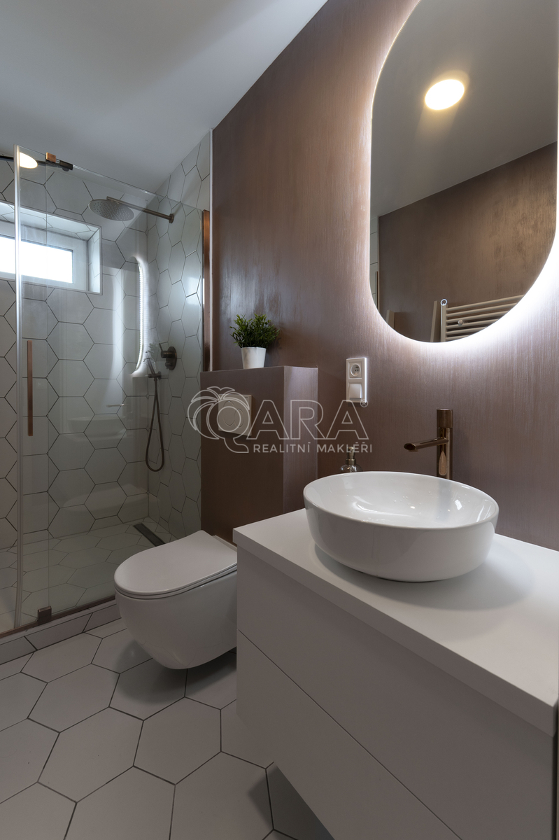 Velkou výhodou je moderní podlahové vytápění napojené na tepelné čerpadlo Sinclair, které v zimě příjemně hřeje a v létě dokáže také chladit. Atmosféru domova doplňují krbová kamna, která mohou posloužit i k přitopení. V bytě je k dispozici optické připojení k internetu, ideální pro práci z domova nebo online výuku. K bytu patří vlastní parkovací místo, což je velká výhoda.