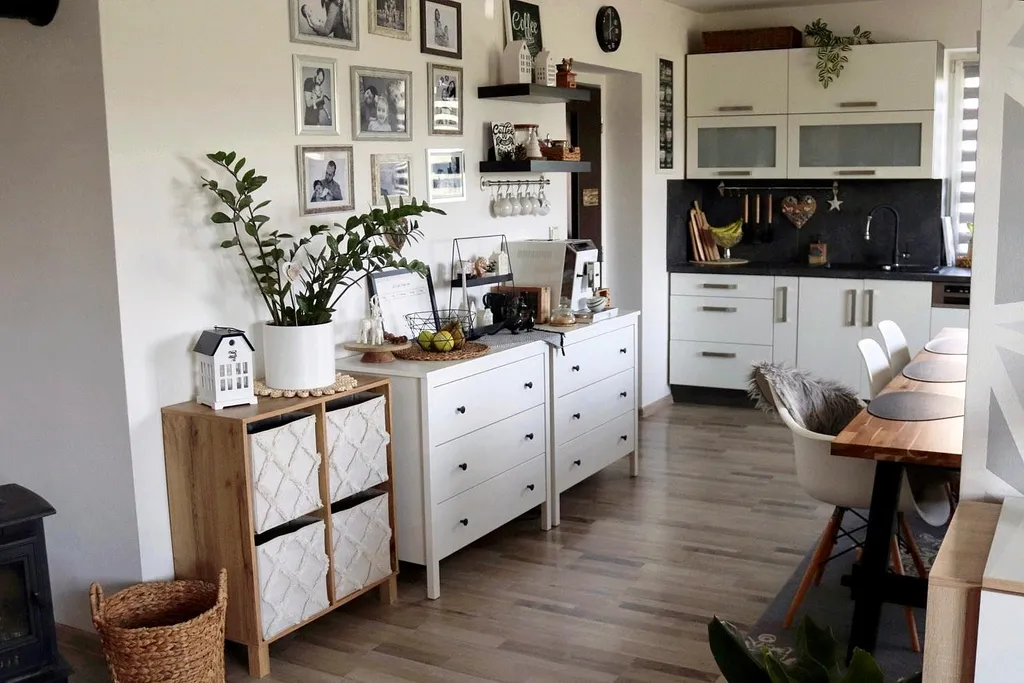 velká kuchyně s jídelnou navazující na útulný obývací pokoj