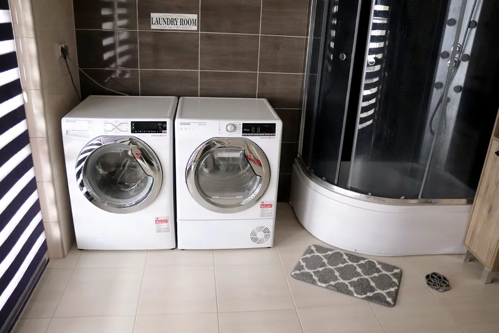 plnohodnotná koupelna se sprchovým koutem a toaletou