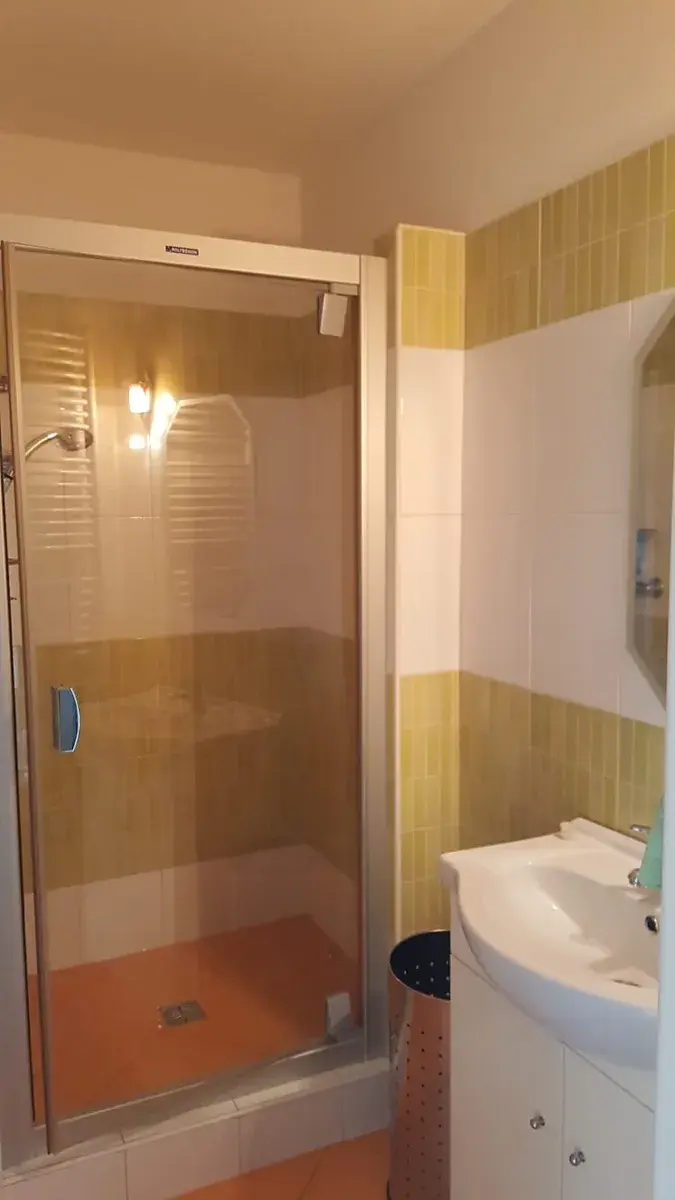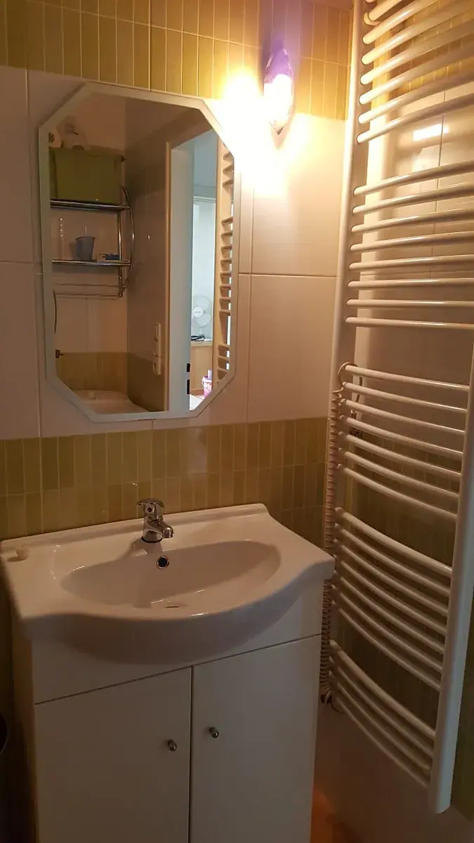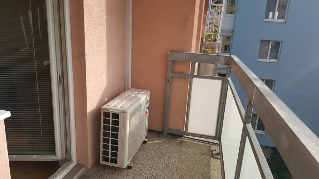 Jeho celková plocha je 28,5 m2 a sestává se z pokoje s kuchyňským koutem , koupelny se sprchovým koutem, pračkou, elektrickým topným žebříkem a toaletou. Kuchyňská linka je vybavena dřezem, elektrickou dvouplotýnkovou deskou, troubou, mikrovlnkou a lednicí s mrazákem. V pokoji s kk jsou položeny parkety a v chodbě a koupelně je dlažba. V bytě je k dispozici klimatizace. K bytu patří sklep a zasklená prostorná lodžie. V předsíni úložné prostory.