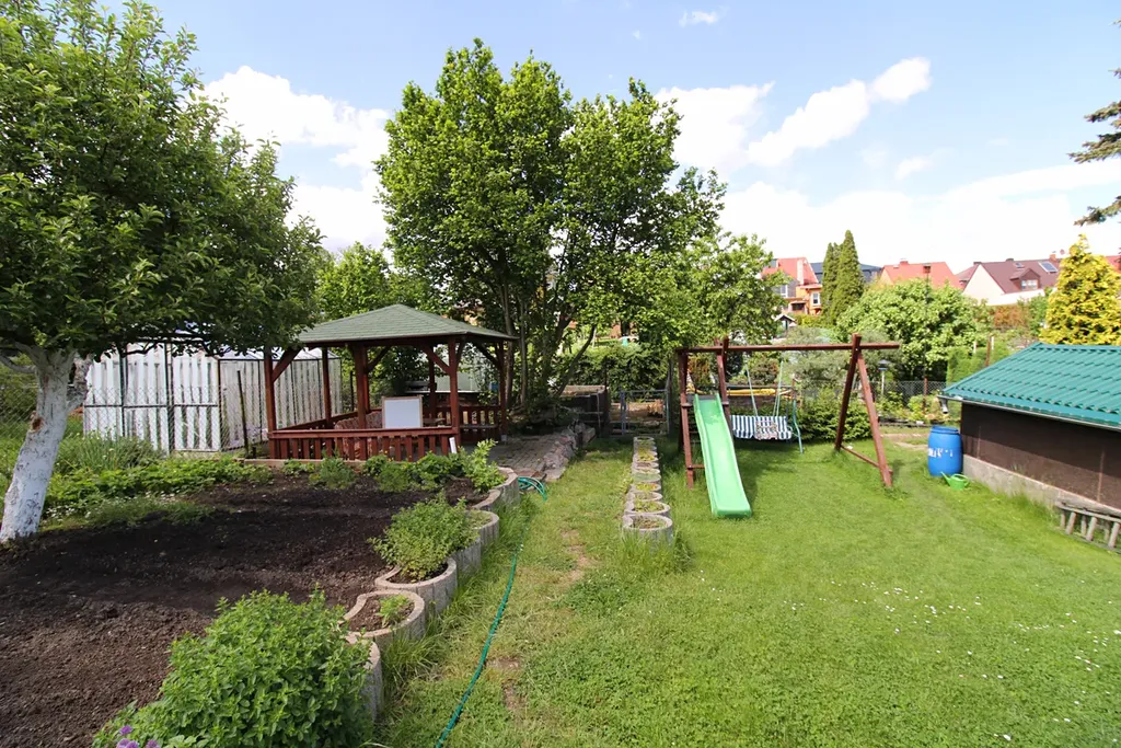 Nabízíme zahradu o výměře 542m² v Karlových Varech. Zahrada je součástí zahradkářské osady Nerudovka, je zde přivedena elektřina a pitná voda, také součástí pozemku je studna pro užitkovou vodu. Ve spodní části zahrady je nově vystavená kolna na uložení nářadí a naproti je pergola k posezení, vedle pergoly najdete novou dřevěnou houpačku. Součástí prodeje je i menší domek. Na pozemku roste ořech, jabloň, angrešt je zde také skleník pro další zahrádkářství.