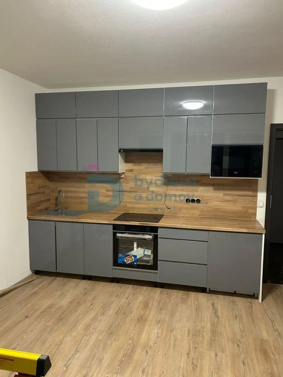 Bytová jednotka je umístěna v 1.NP v cihlovém domě a pronajímá se částečně zařízena pouze kuchyňská linka s vestavěnými spotřebiči.