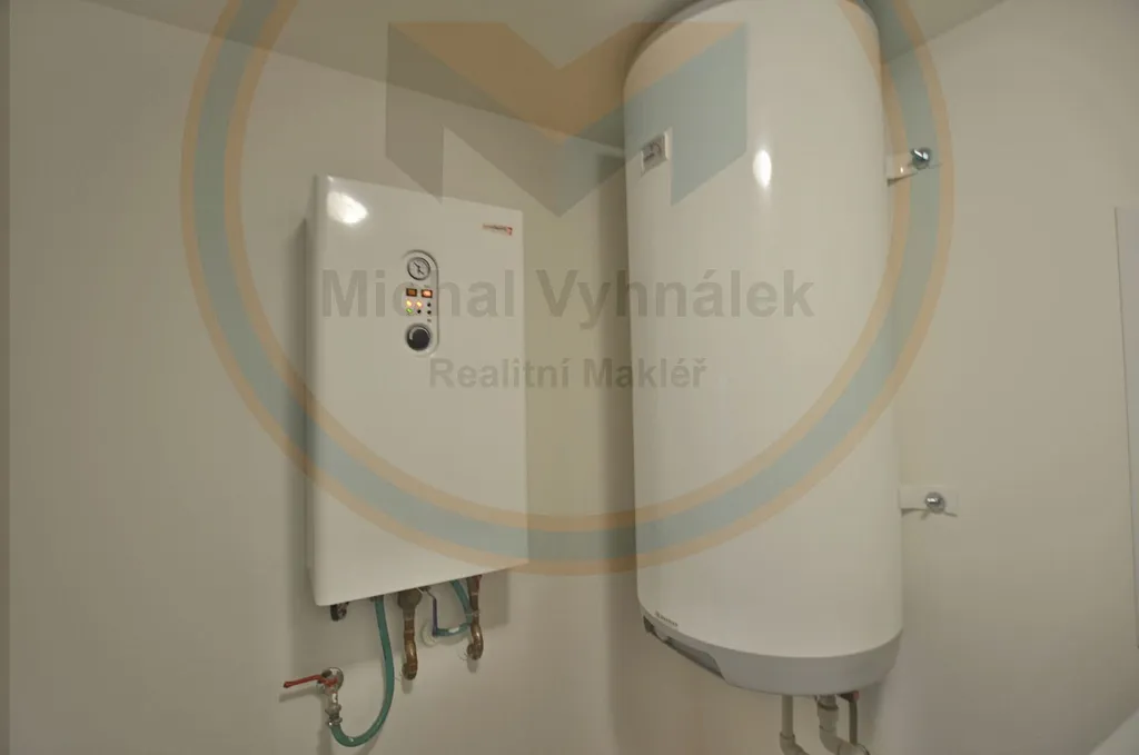 Vytápění domu je etážové, zajištěné elektrickým kotlem, v obytném prostoru je navíc funkční krb.