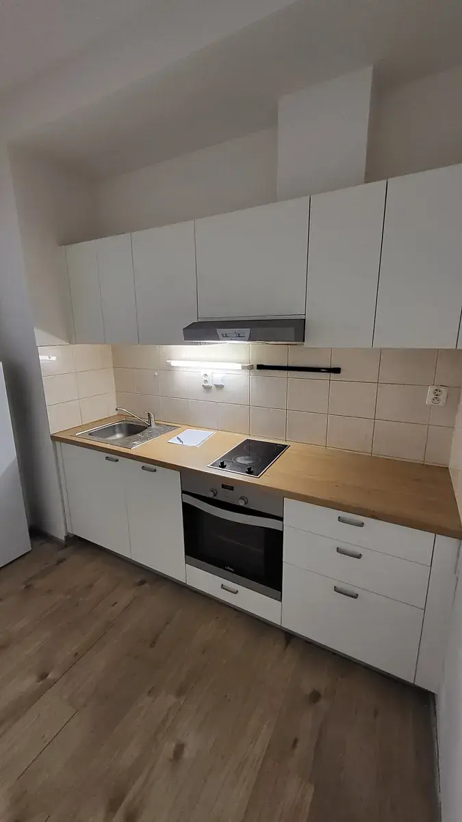 Podlahy tvoří vinyl a dlažba, byt je po kompletní rekonstrukci.