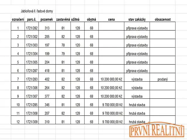 Výstavba a prodej nových řadových domů na ulici Třešňová
