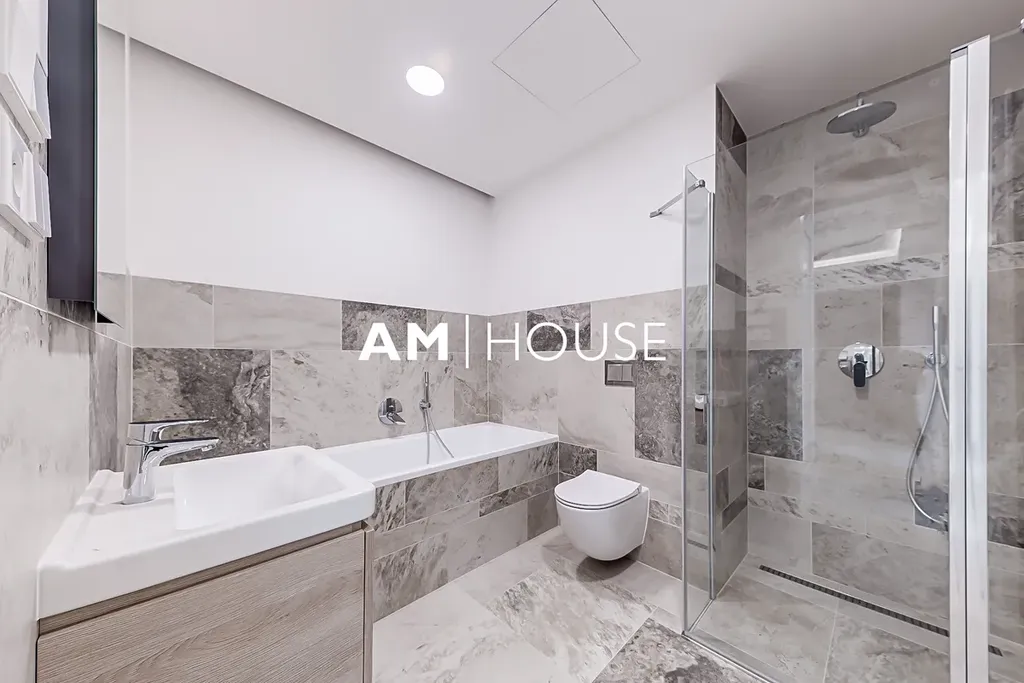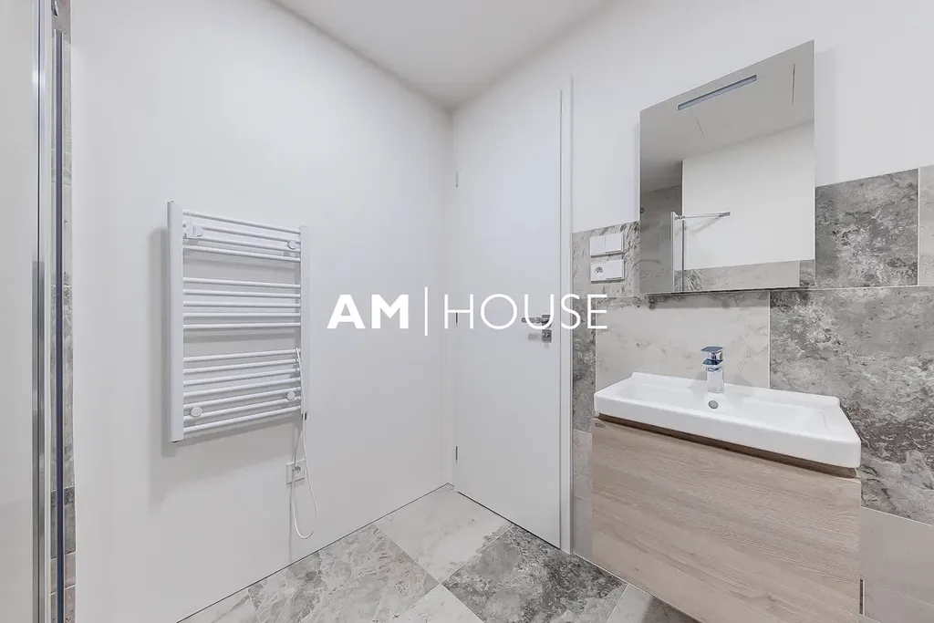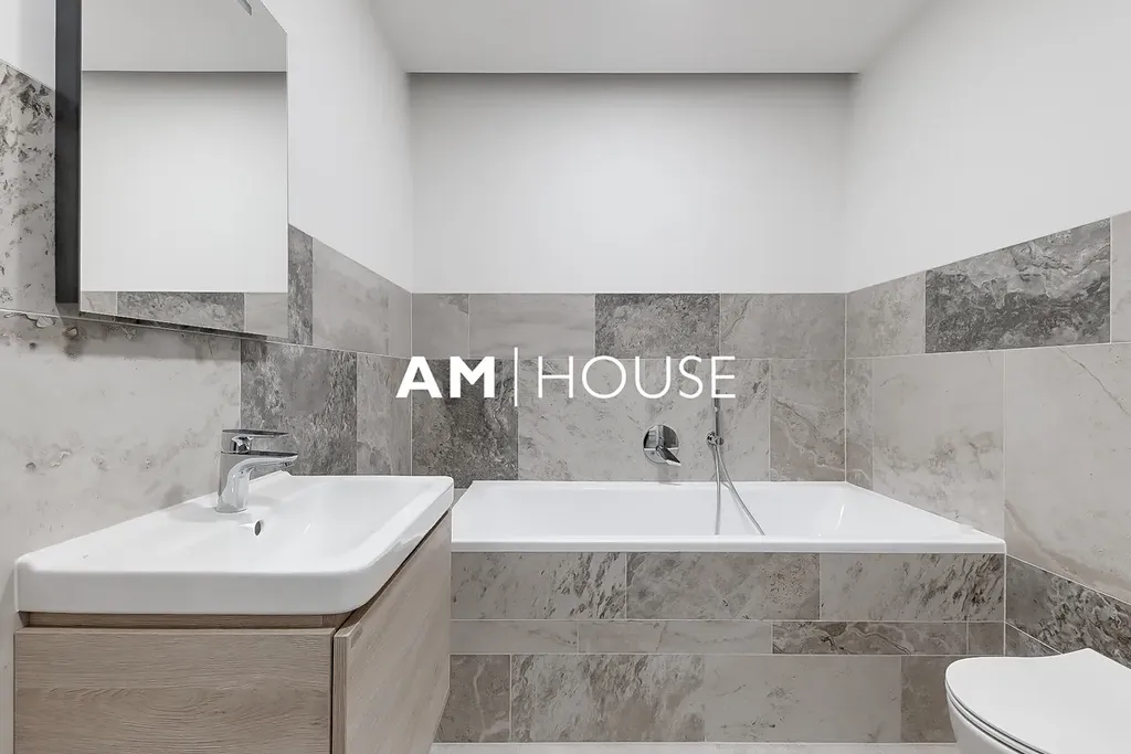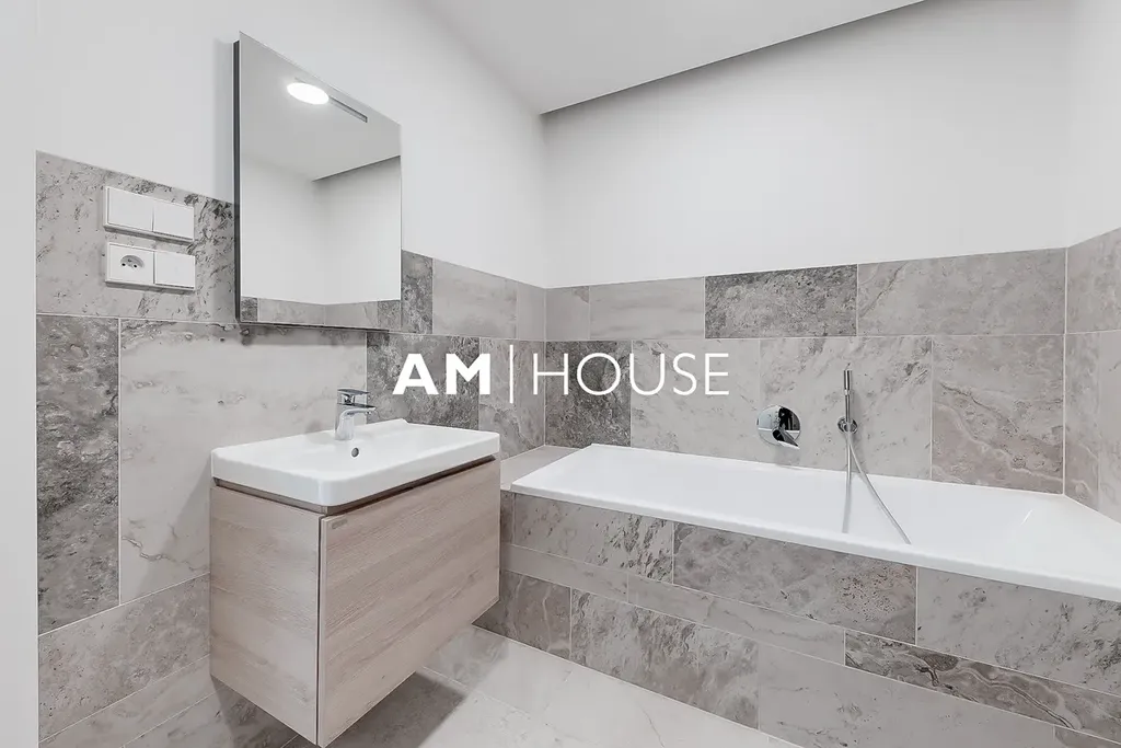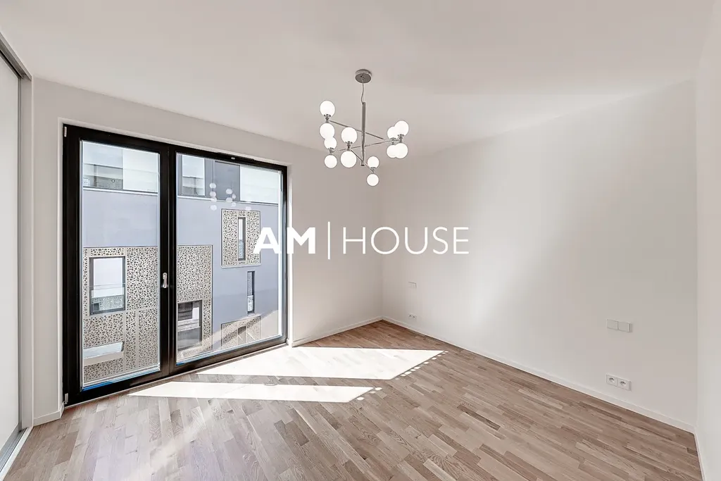 Centrum obývací části představuje velký a slunný pokoj s kuchyňským koutem a vstupem na balkon. Koupelna s vanou, sprchovým koutem, umyvadlem a WC. Být má samotné WC a oddělenou technickou místnost.
