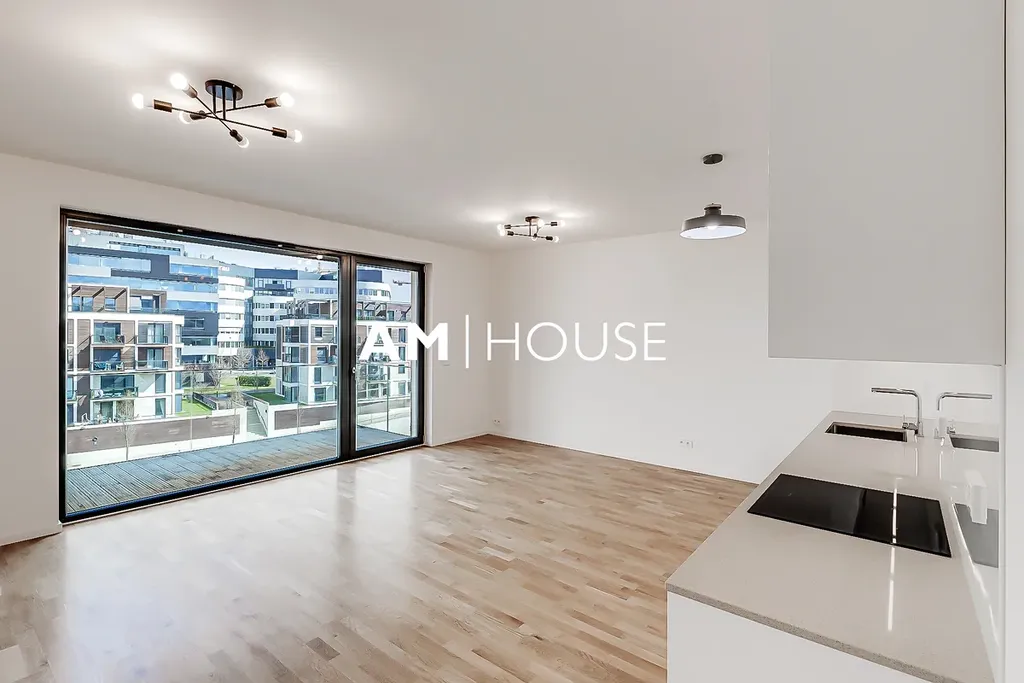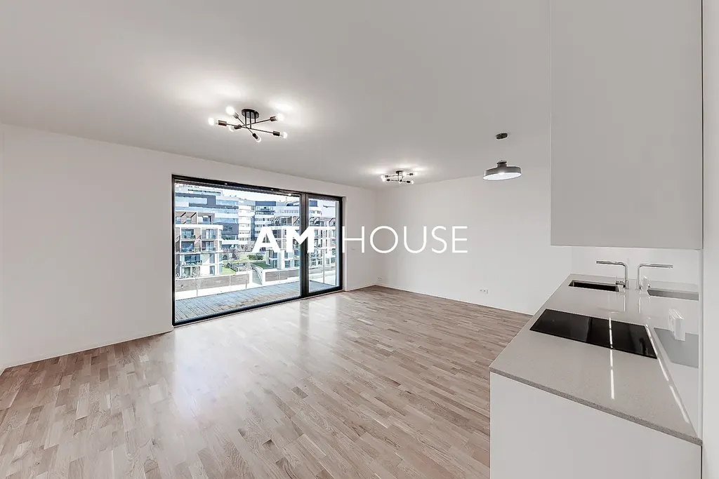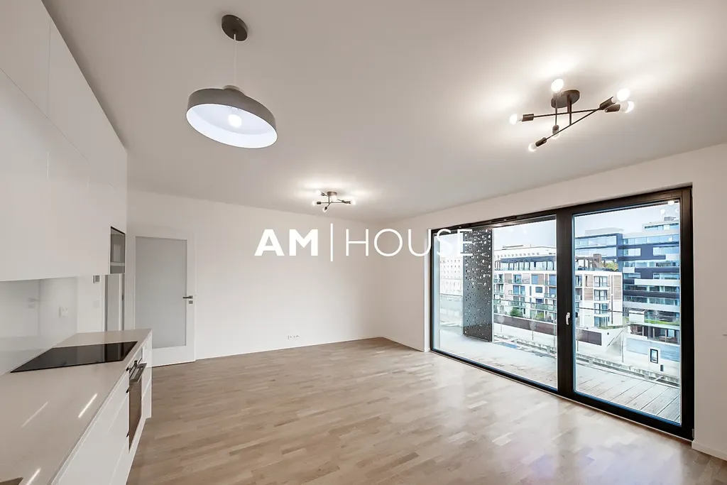 Částečně zařízený byt s výhledem na vodu se nachází v 3. podlaží v novostavbě.