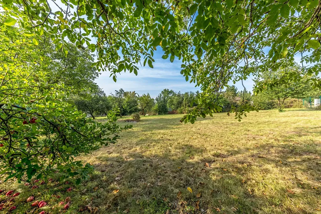 Na pozemku se nacházejí vzrostlé ovocné stromy a ořešáky, které dodávají místu charakter a poskytují příjemný letní stín.