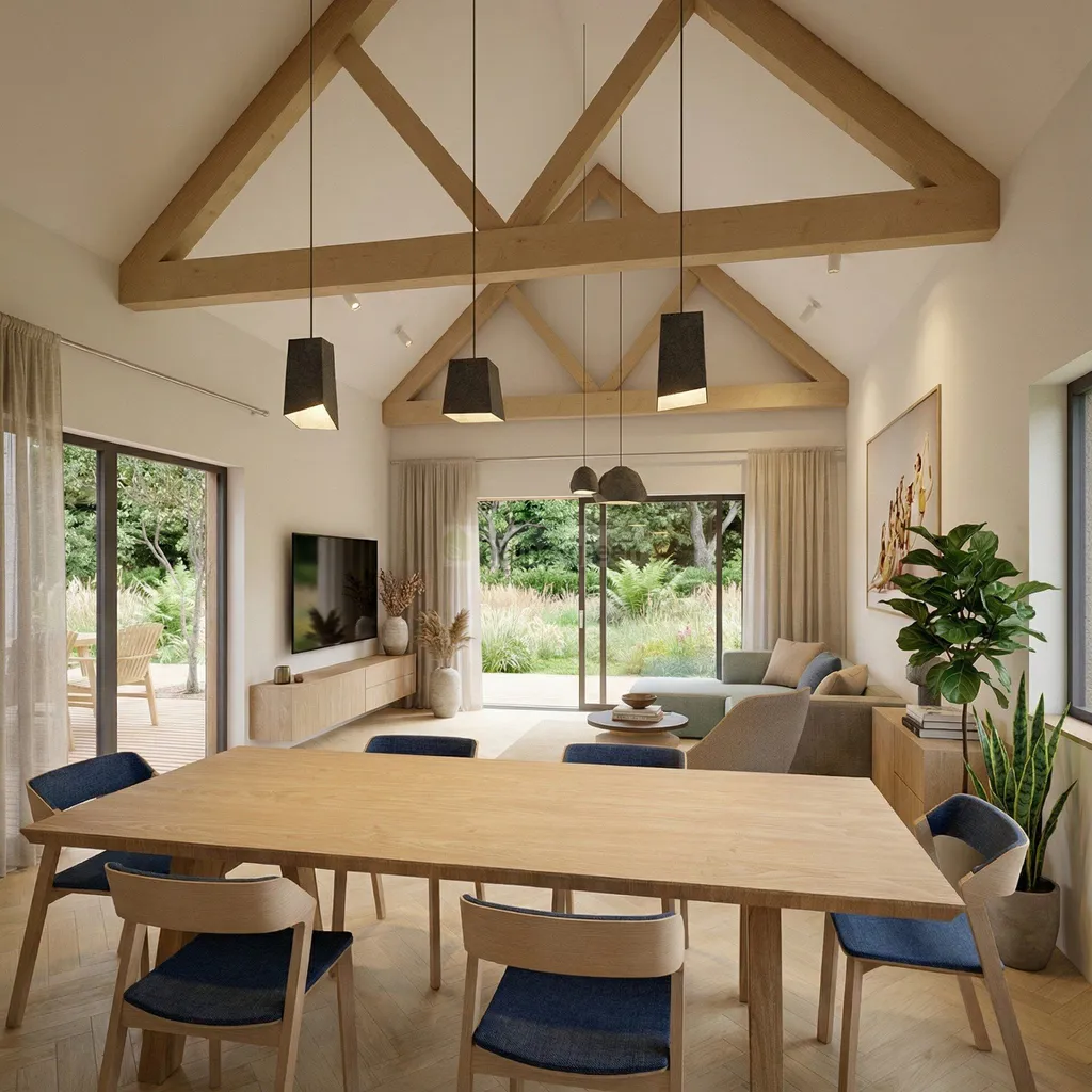 Doporučujeme na tomto pozemku postavit BUNGALOV 148 - atypický bungalov pro klienty, kteří hledají výraznou architekturu a velkorysý prostor. Dům je rozdělen do dvou částí, které přirozeně oddělují společenskou a klidovou část, a zároveň je propojuje chráněné poloatrium – soukromý venkovní prostor v samotném srdci domu. Dominantou je obytný prostor s otevřeným stropem, který je propojený se zahradou ze všech hlavních místností. Dispozice 5+kk na 148 m² nabízí vysoký standard bydlení: pracovnu s variabilním využitím, ložnici s vlastní koupelnou a šatnou i silné propojení interiéru s exteriérem. Dům je navržen jako zážitek z prostoru, světla a klidu – pro ty, kteří chtějí bydlení s charakterem.