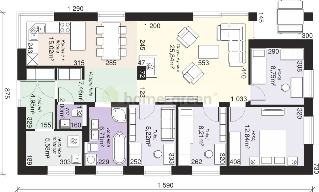 Doporučujeme na tomto pozemku postavit rodinný přízemní dům Beta 21 s dispozicí 5+KK a užitnou plochou 106 m2. Zastavěná plocha této dřevostavby je 139 m2. RD spojuje praktické řešení, moderní design a úsporný provoz, takže poskytuje maximální pohodlí pro celou rodinu.