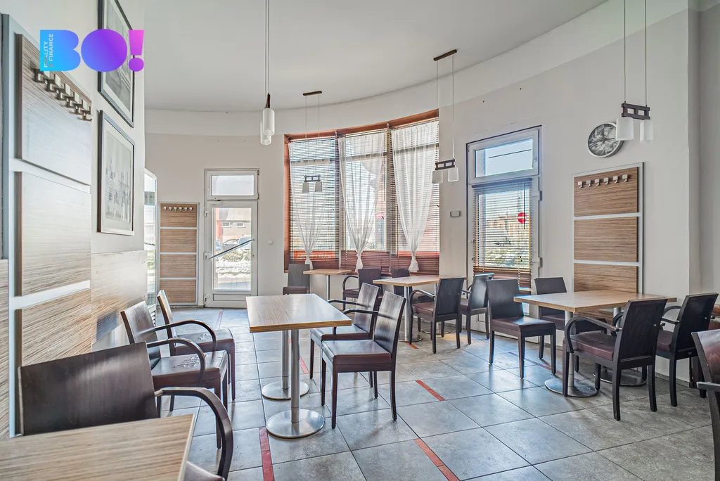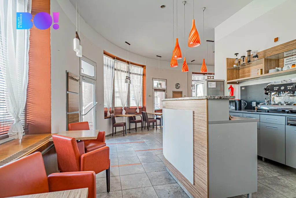 Prostor byl několik let úspěšně využíván jako kavárna a je tomu přizpůsoben i svým celkovým charakterem. Interiér působí svěže a otevřeně díky velkým oknům, která do prostoru přivádějí dostatek denního světla. Moderní bar, příjemné posezení a celkové ladění interiéru vytvářejí atmosféru vhodnou pro kavárenský provoz, ale zároveň poskytují prostor pro vlastní úpravy a nový koncept.
