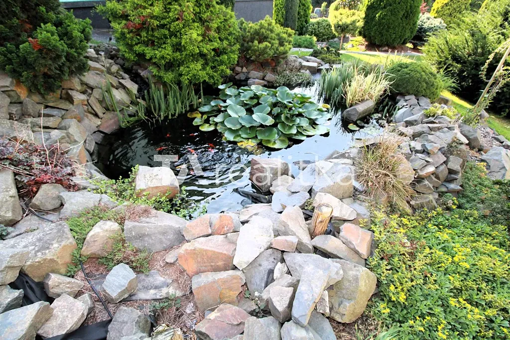 Zahrada je již nádherně upravená a nabízí vše, co si můžete přát. Relaxujte u jezírka obklopeného okrasnými keři a pozorujte barevné škály rostlin. Děti (a možná i dospělí) ocení dobrodružství při objevování skalky.